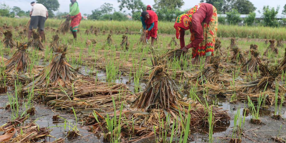 Dawadi, who was seen gathering the soaked rice plants from his field, was sad over the loss. As he said, he had hired workers from Rautahat for the rice transplantation and had invested Rs 25,000 as labor costs for the same.