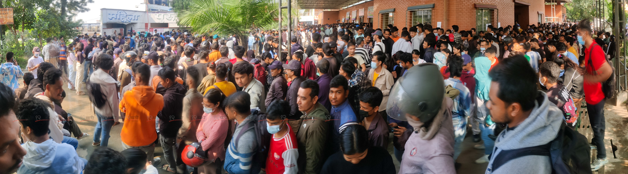 Kathmandu, Oct.9: A crowd of people, going to their homes for the main festivals Dashain, Tihar and Chhath, in the new bus park to buy advance bus tickets.