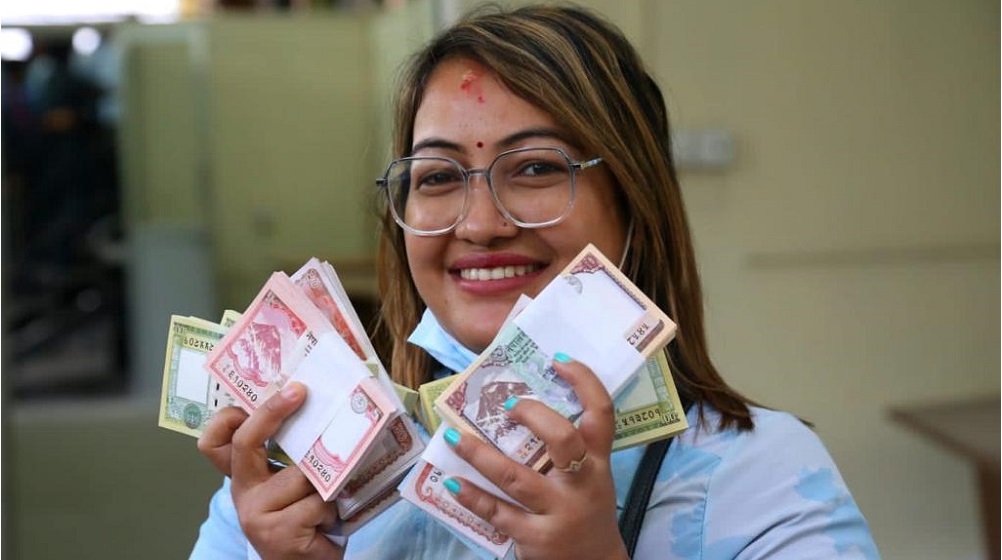 People are queuing up to get new currency notes. NRB has printed new notes of more than Rs 10 billion this year for Dashain.