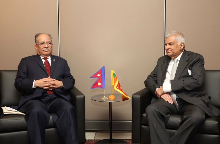 PM Prachanda had a meeting with the President of the Socialist Democratic Republic of Sri Lanka Ranil Wickremesinghe today #UNGA78 The discussion was focused on further strengthening bilateral relations and multilateral cooperation between the two countries.