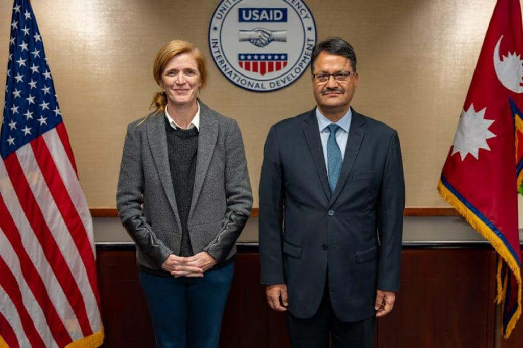 Washington DC, Nov 1: Minister for Foreign Affairs Narayan Prakash Saud who is on an official visit to the United States of America, had a meeting with Administrator of the United States Agency for International Development (USAID) Samantha Power on Tuesday. On the occasion, they discussed the matters related to the USAID’s ongoing programmes aligning development priorities of Nepal and their effectiveness. Administrator Power expressed the US government’s commitment to support Nepal towards advancing progress in democratic process and building strong relations. Reiterating USAID’s commitments to support Nepal’s efforts for enhancing inclusive economic development, Power discussed on USAID’s tasks about enhancing investment potentials through government and private sectors. At the meeting held at USAID headquarters, Washington DC, Minister Saud extended gratefulness to the USAID for its longstanding support to Nepal’s efforts for economic and social development. On the occasion, they also discussed the close partnership and relations between Nepal and the US spanning over the past 75 years. It may be noted that the development agreement amounting to 659 million US Dollars was signed between the Government of Nepal and USAID in 5 May 2022 for five years. As stated, the assistance amount will be spent in different areas after Nepal’s graduation to the status of medium level developing country from the category of Least Developed Country. Also on the occasion, matters related to other potential projects were discussed. Also present during the meeting were Nepal’s Ambassador to the US, Shreedhar Khatry and US Ambassador to Nepal Dean R.Thompson. The US has been a first-ever and crucial bilateral development partner of Nepal since 1951. —