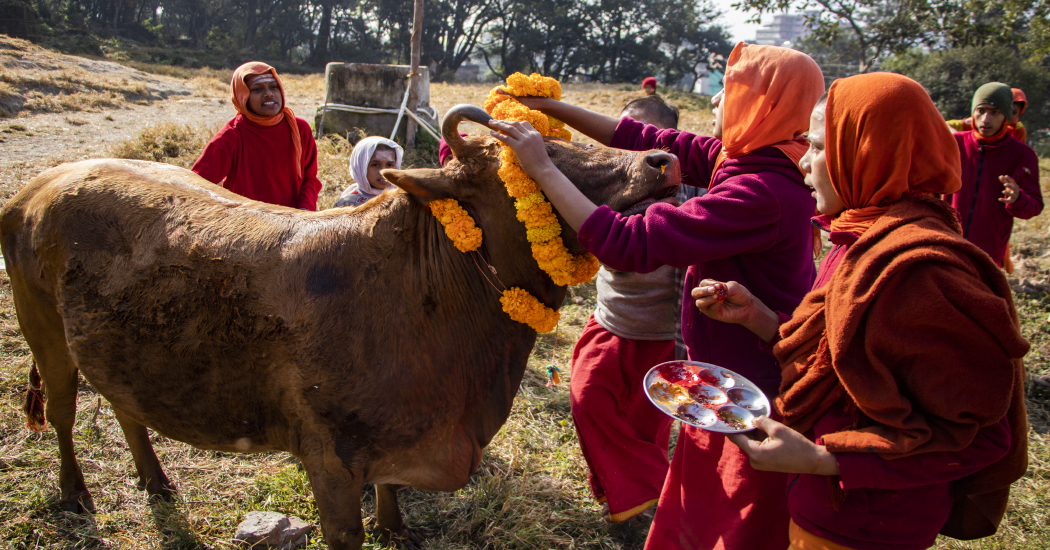 On the occasion Nepal Ved Vidhyashram, Gaushala celebrated Gai Tihar by worshipping cows.