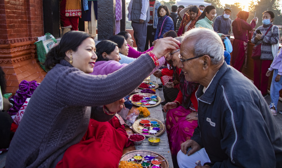Kathmandu, Nov. 15: Tihar is being marked today by receiving Tika from sisters to their brothers.