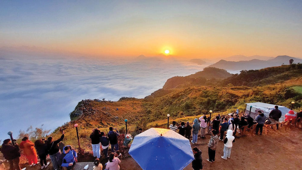 Every time people climb, they are greeted with a breathtaking view similar to this scenic beauty. To witness this spectacle, people are converging in Manungkot, resembling a swarm of ants. The influx of both domestic and foreign tourists has experienced a rapid surge over the past decade. According to local tourism professionals, around 1,000 tourists visit the area every day.