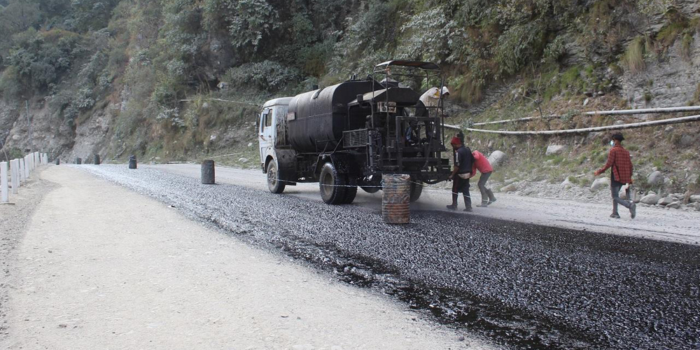 Myagdi, Nov 26 : The Beni-Galeshwar section of the Kaligandaki Corridor road project falling in Myagdi is being blacktopped.