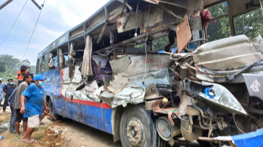 The accident took place when a passenger-ferrying bus (Ba 3-001 Kha 2587) en route to Kathmandu from Kakadbhitta and a truck (Na 7 Kha 7300) from opposite direction collided nearby number 3 bridge in Amlekhgunj this morning.
