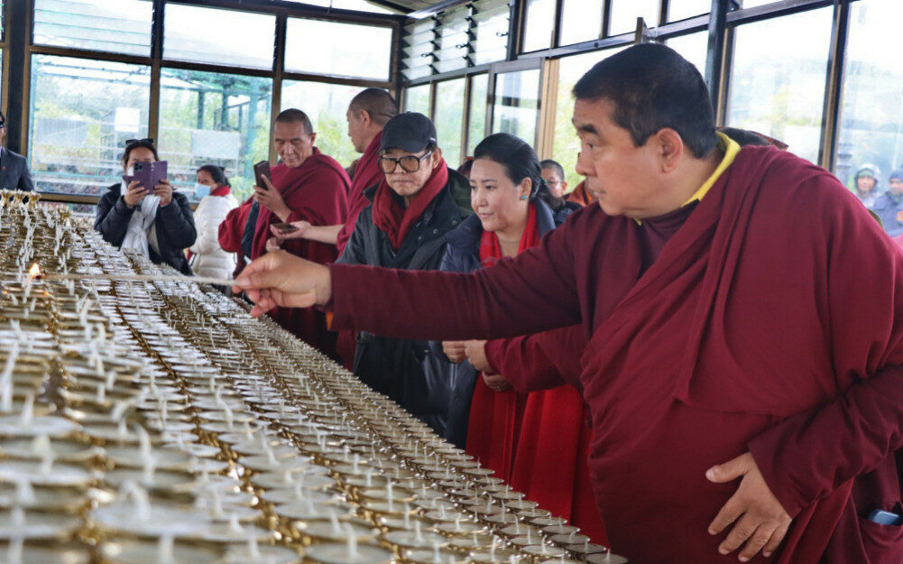 He takes a break for an hour at noon for lunch. During the puja, he recites various mantras, offers prayers, and meditates while counting prayer beads. He also performs lamp-lighting ceremonies at intervals. He is expected to participate in the puja in Lumbini until Monday.