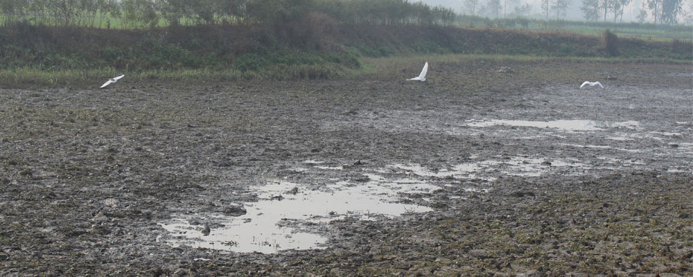 Sarlahi, FEB. 6: The wetlands in the Sarlahi district are shrinking due to human encroachment and pollution.