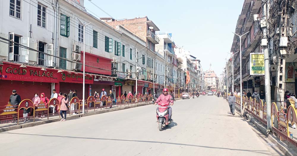Kathmandu, Feb. 21: Nearly a month has passed since the Kathmandu Metropolitan City announced a ban on vehicles parking on black-topped roads in the New Road area. However, a dispute persists between traders, ward-level authorities and the metropolis regarding the decision.