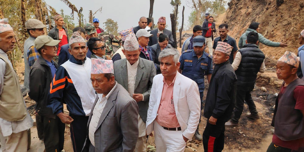 Bhojpur, March 20 : Chief Minister of the Koshi Province, Kedar Karki accompanied by Province Assembly member Binod Bantawa and Sirjana Rai made an on-site inspection of Hatuwagadhi fire-ravaged area.