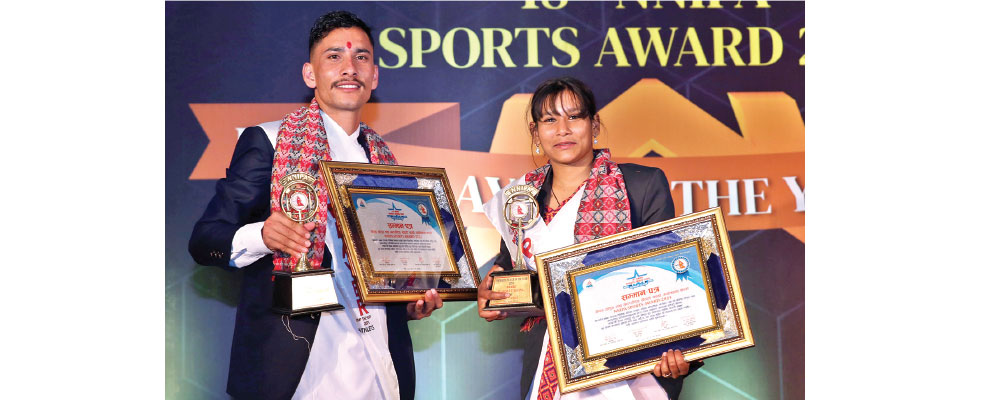 Kathmandu, Mar. 26: Boxer Sushma Tamang and athlete Deepak Adhikari were declared the best sportspersons of the 18th NNIPA Sports Awards 2079. Sushma won a silver medal in Asian Youth Boxing, while Deepak won individual and team gold medals in Asian Cross Country last year. Both Sushma and Deepak also received a cash prize of Rs 100,000.