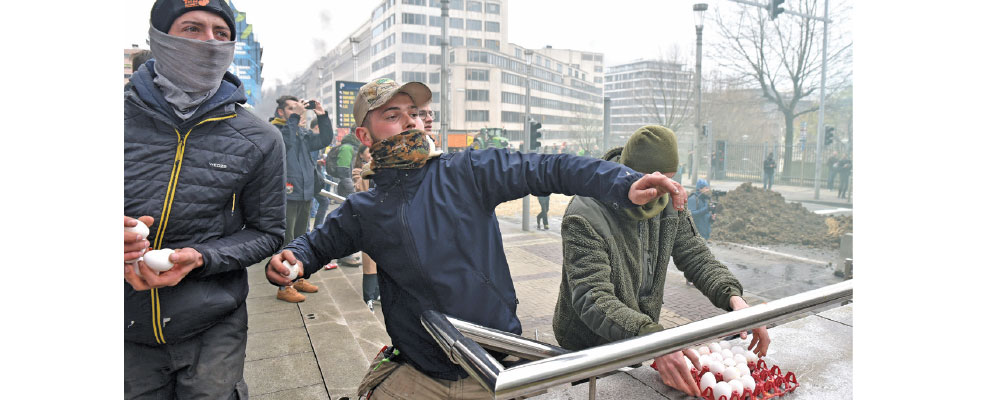 The farmers protested what they see as excessive red tape and unfair trading practices as well as increased environmental measures and cheap imports from Ukraine. “Let us make a living from our profession,” read one billboard on a tractor blocking a main thoroughfare littered with potatoes, eggs and manure.