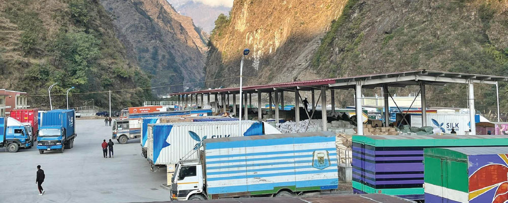 More than a dozen containers, vans and vehicles from Nepal now reach the yard of the import centre located near Khasa Bazaar from Tatopani border point. Due to the reconstruction of Khasa Bazaar, which was destroyed by the earthquake, the Nepali container cannot reach there.
