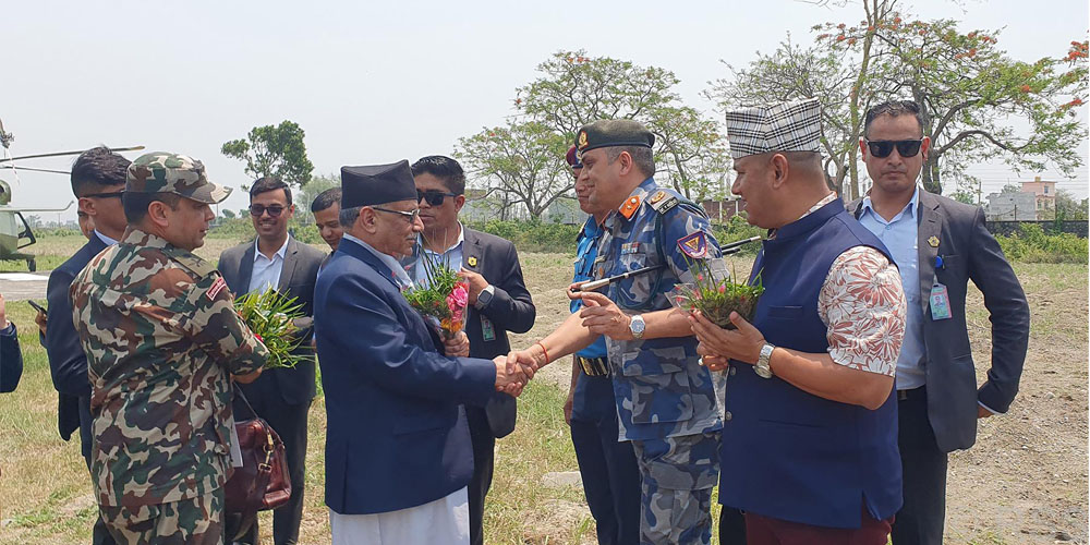Sundarharaicha (Morang), April 26: Prime Minister Pushpa Kamal Dahal ‘Prachanda’ has arrived in Morang via a helicopter of the Nepali Army a while ago.