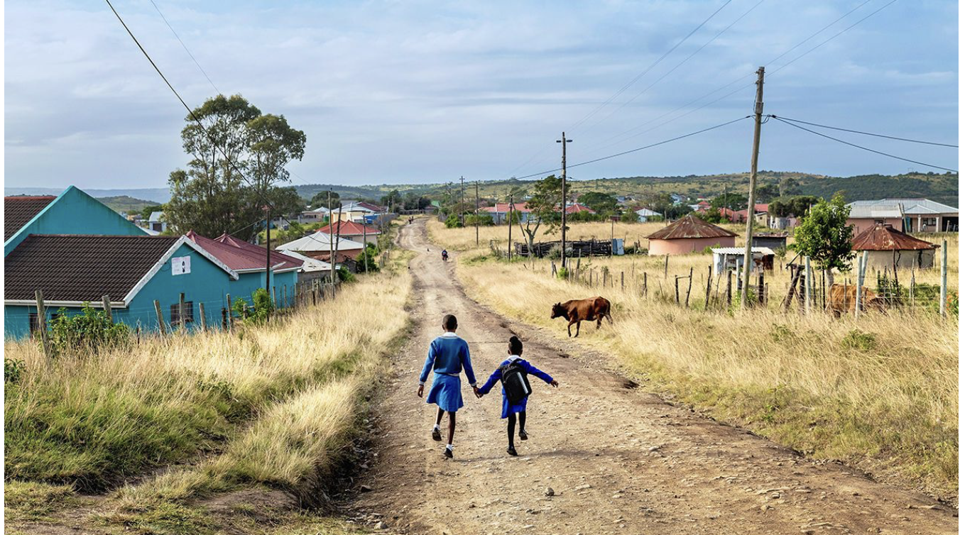 Young Xhosa girls walk to school in Eastern Cape, South Africa