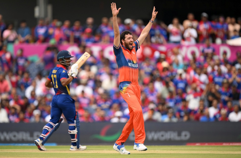 Towards bowling, Tim Pringle and Logan van Beek took three wickets each and Paul van Meekeren sent two Nepali batsmen to pavilion.