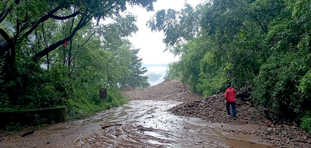 July, 11: The continuous rainfall-triggered landslide has blocked the Mid-Hill highway in Kushma Municipality – 1, Nayapul of Parbat district. Photo:
