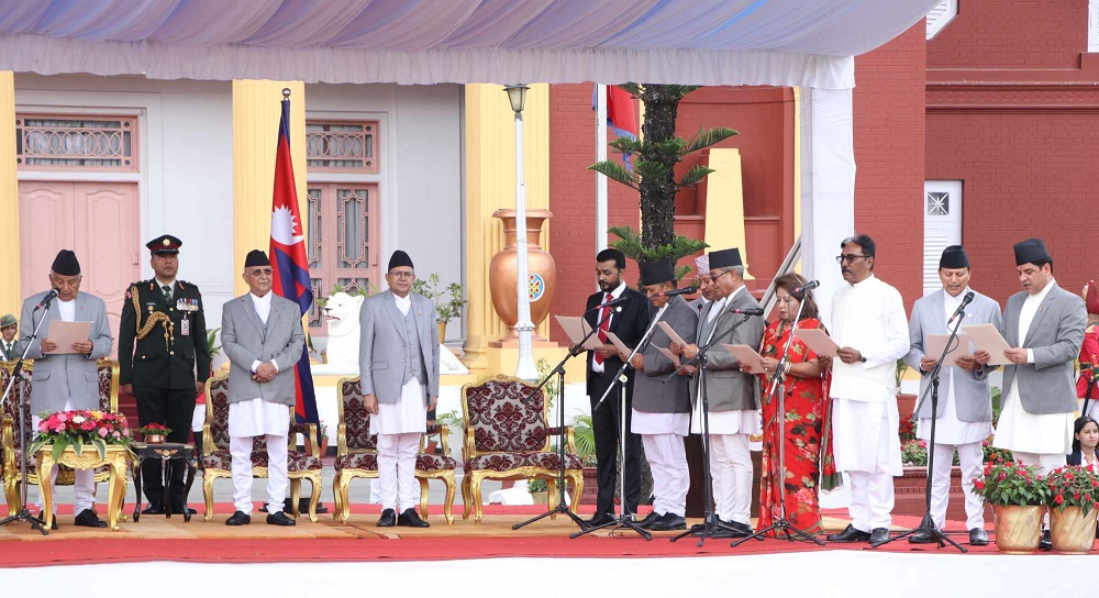 Kathmandu, July 15: After Prime Minister KP Sharma Oli and Deputy Prime Ministers, 19 newly appointed ministers have been sworn in.