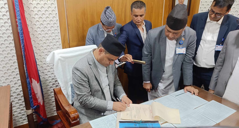 Kathmandu, July 15: Newly-appointed Minister for Health and Population Pradeep Paudel assumed office reaching the Ministry at local Ramshahpath today immediately after taking the oath of office and secrecy from the President.