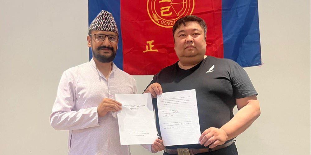 The 11-point MoU stipulates exchange of visits by instructors; the university and the Association providing training opportunity to Nepali players; jointly organizing at least one programme in a year; providing the assistance required for producing new players; conducting cultural exchanges and social awareness for the development of traditional archery, Wushu and wrestling; encouraging participation in competitions and running a games awareness campaign as well.