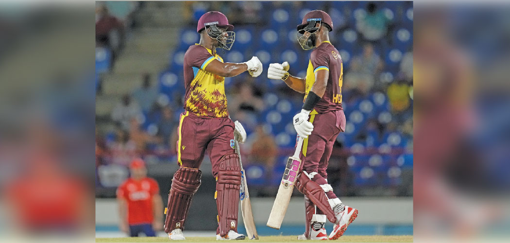Nov. 18: West Indies, led by explosive half centuries from openers Shai Hope and Evin Lewis, chased down a target of 219 to beat England with an over to spare to win by five wickets in their T20 international on Saturday.
