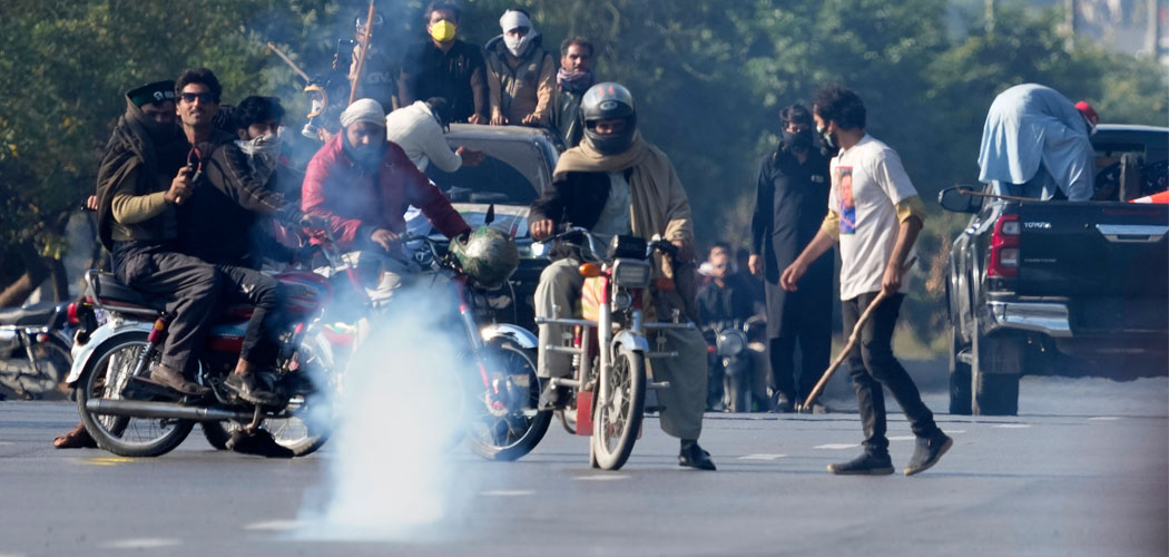 Islamabad, Nov. 27: Supporters seeking the release of imprisoned Pakistani former premier Imran Khan on Tuesday broke through a ring of shipping containers locking down the capital Islamabad, while at least six people have died in protest-related violence. Protesters battled security forces and ignored a government threat to respond with gunfire.