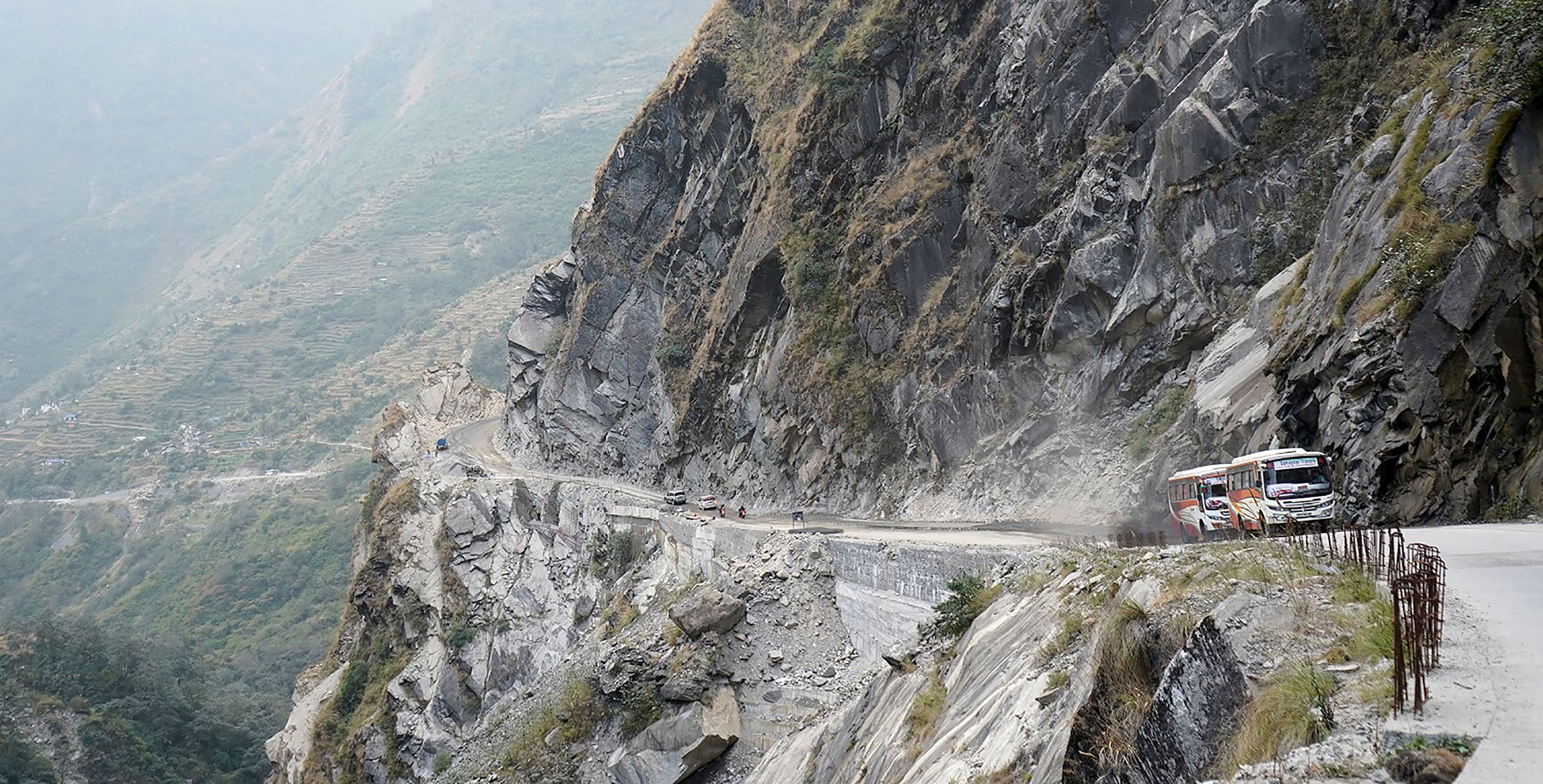 Vehicles crossing Kavre Bhir