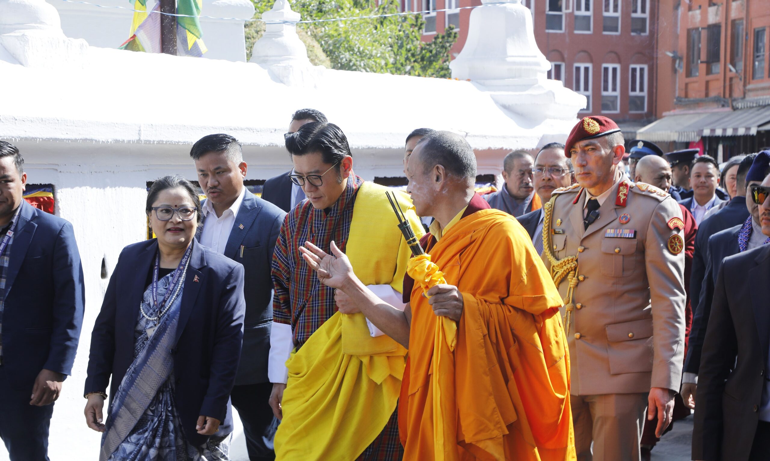 Kathmandu, Dec 6: King Jigme Khesar Namgyel Wangchuck of Bhutan has visited Boudhhanath and paid homage. Before this, he visited and paid homage at Swoyambhunath.