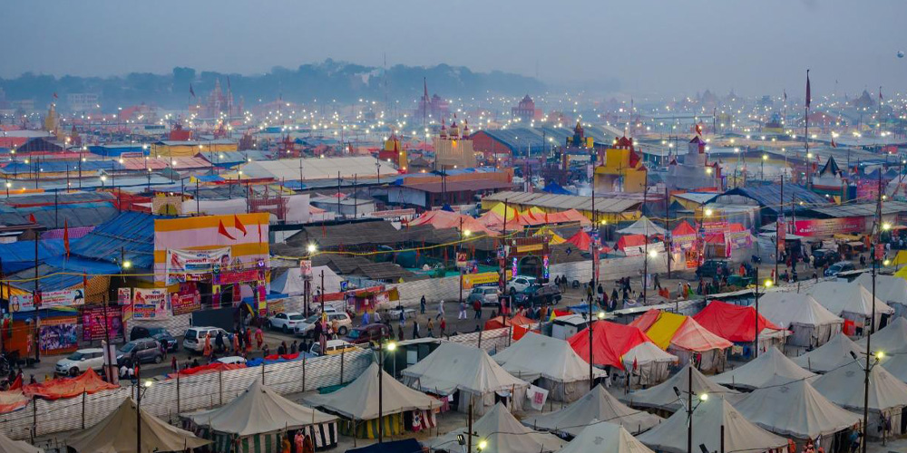 As many as 100,000 temporary tent houses have been constructed at the confluence of the three rivers on the right and left banks for the pilgrims.