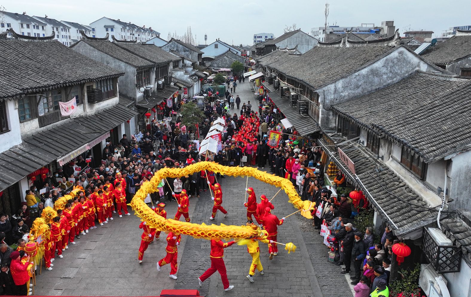 Folk dancers perform a dragon dance in celebration of the upcoming Lunar New Year of the Snake in Taicang, Jiangsu province, China. Stringer/AFP/Getty Images