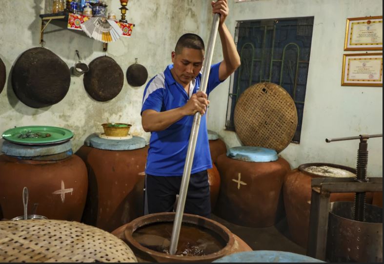 Phong chose to stay behind and nurtured a business making the beloved condiment, known as nuoc mam in Vietnam, that is now in its fourth generation with his son, Bui Van Phu, 41, at the helm. Fish sauce from the village has been recognized by Vietnam as an indelible part of the country’s heritage and the younger Bui is acutely aware of what that means.