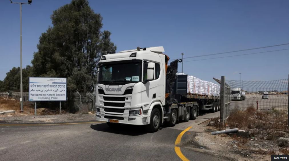 On Monday evening, Israeli military body Cogat announced five UN lorries carrying humanitarian aid, including food for babies, had entered Gaza via the Kerem Shalom crossing “following the recommendation of professional IDF officials and in accordance with the directive of the political echelon”.