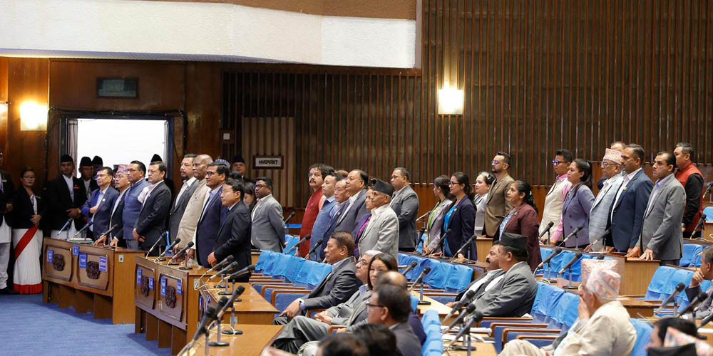 Immediately after the commencement of today’s meeting, opposition parties including the CPN (Maoist Centre), Rastriya Swatantra Party, and the Rastriya Prajatantra Party (RPP) obstructed the house demanding the resignation of the Home Minister.