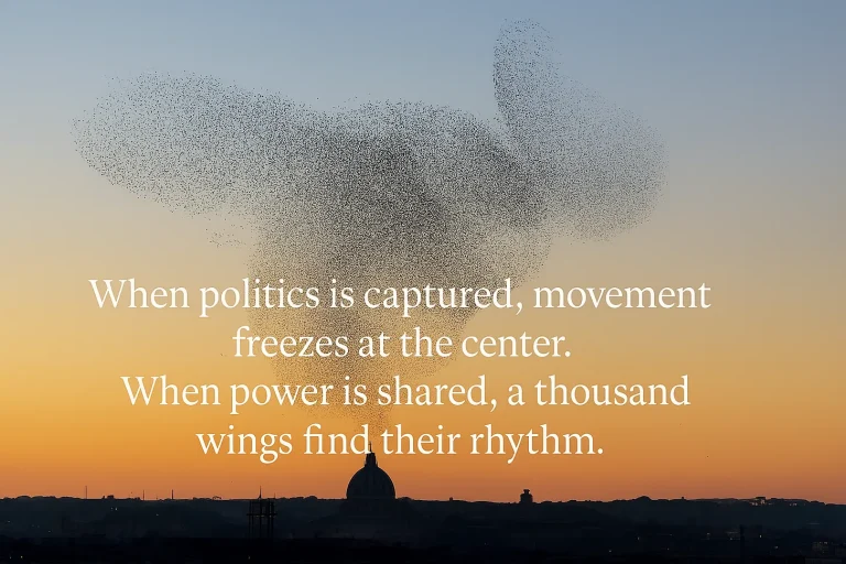आज परम्परागत पार्टीहरूभित्रको पीडादायी सङ्घर्षलाई मात्र हेर्नुहोस्ः तल्लो तहका नेताहरू, सार्वजनिक दबाब र नैतिक सङ्कटका बाबजुद पनि, शीर्ष तहमा परिवर्तन ल्याउन असमर्थ छन्। शक्ति यति कडाइका साथ केन्द्रीकृत गरिएको छ कि वैध असहमतिलाई पनि देशद्रोह मानिन्छ। विविध आवाजहरूको “टापु“ लाई अनुमति नदिँदा, सम्पूर्ण पार्टीहरू भित्रैबाट बिस्तारै जलिरहेका छन् – नैतिक रूपमा थकित र संरचनात्मक रूपमा पक्षाघात भएका छन्।