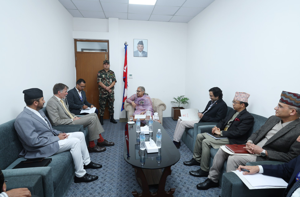 काठमाडौँ, १३ कात्तिक । नेपालका लागि जर्मनीका राजदूत उडो भोल्जले प्रधानमन्त्री सुशीला कार्कीसँग शिष्टाचार भेट गरेका छन्।प्रधानमन्त्री तथा मन्त्रिपरिषद् कार्यालयमा भएको भेटमा नेपाल र जर्मनीबीच द्विपक्षीय हित र मित्रताका विषयमा विचार आदानप्रदान भएको हो। कार्की प्रधानमन्त्रीमा नियुक्त भएपछि उनीहरुबीचको यो पहिलो भेट हो। प्रधानमन्त्री कार्कीले नेपालको राहदानी छपाइको जिम्मा पाएको जर्मन कम्पनीसँग सम्झौतामा भएको मितिअगावैदेखि राहदानी छपाइका लागि आवश्यक पहल गरिदिन राजदूत भोल्जसँग आग्रह गरिन्।नेपाली नागरिकलाई छिटोछरितो सेवा प्रवाह गर्ने यस कार्यमा जर्मन पक्षबाट सहयोग प्राप्त हुने विश्वास पनि व्यक्त गरिन्।जवाफमा राजदूत भोल्जले आफ्नोतर्फबाट कम्पनीलाई अनुरोध गरी यस विषयमा सक्दो पहल गर्ने बताए।