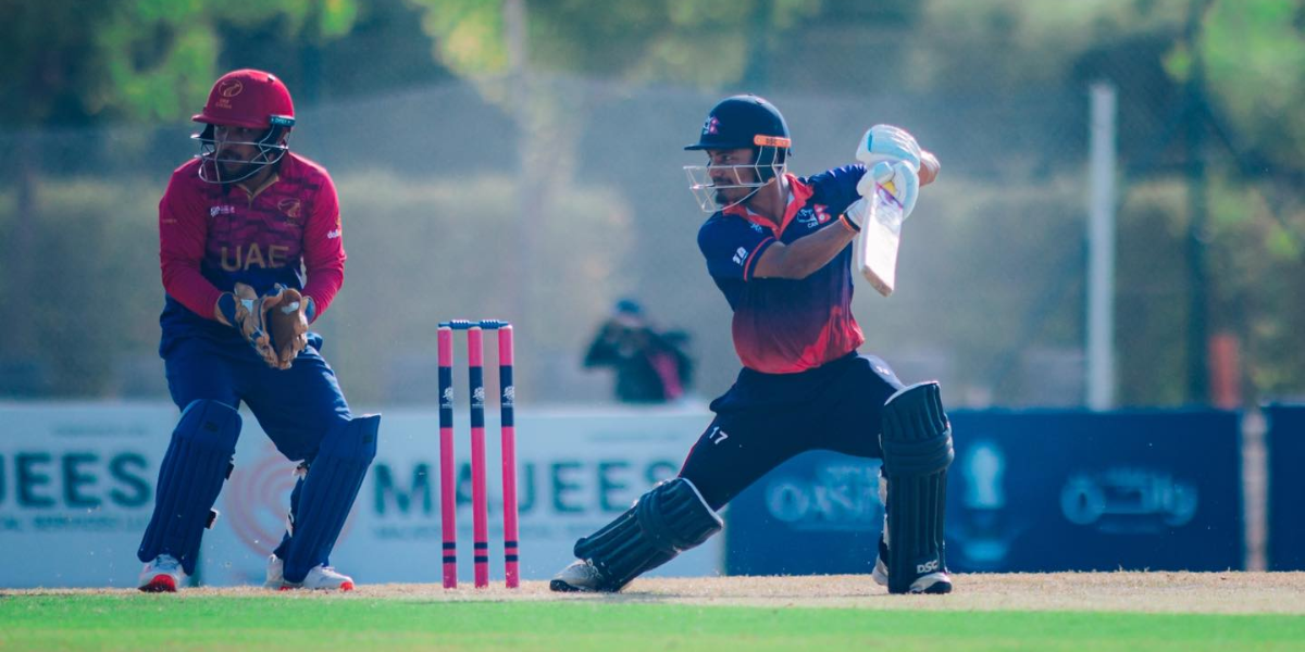 नेपालले पहिले ब्याटिङ गरेर ५० ओभरमा सबै विकेट गुमाउँदै २ सय ३३ रन बनाएको थियो। उता घरेलु टोली युएईले लक्ष्य ४३।३ ओभरमै पाँच विकेट गुमाएर सजिलै भेट्टायो ।युएईका ओपनर आलिसान सराफ र आर्यान्स शर्माले पहिलो विकेटका लागि ६३ रनको साझेदारी गरे । आलिसान ४५ रनमा करण केसीको बलमा कप्तान रोहित पौडेलबाट क्याच आउट भए। सोहेब खान खाता नखोली सन्दीप लामिछानेको बलमा आउट भए।