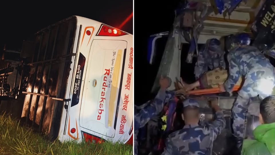 चितवन, १४ कात्तिक । चितवनको भरतपुर महानगरपालिका–९ टिकौली जंगलमा एउटा ट्रक र दुईवटा बस आपसमा ठोक्किँदा ३३ जना घाइते भएका छन् । घाइतेमध्ये ८ जनाको अवस्था मध्यम खालको छ ।गएराति करिब पौने २ बजे इँट्टा लोड गरेर पार्किङ गरिराखेको ना ६ ख ८१३ नम्बरको ट्रकमा गौरबाट काठमाडौंतर्फ जाँदै गरेको बा. प्र. ०३०० ख ०१२३ नम्बरको डल्फिन यात्रुबाहक बस ठोक्किएको र सोही बसमा जनकपुरबाट काठमाडौं तर्फ जाँदै गरेको बा. प्र.०३०० ख ३९०२ नम्बरको रुद्राक्ष यात्रुबाहक बस समेत ठोक्किएको थियो । बस सडकमा पल्टिएको थियो । लगत्तै सशस्त्र प्रहरी बल, नेपाल नं। १७ गण आँपटारी चितवनबाट खटिएको टोलीले घाइतेहरुलाई उद्धार गरी उपचारका लागि अस्पताल पठाएको थियो । घाइतेहरुमध्ये चितवन मेडिकल कलेजमा १५ जना, नेशनल सिटी अस्पतालमा १३ जना र भरतपुर अस्पतालमा ५ जनाको उपचार भइरहेको छ । क्रेनको सहायताले बसलाई सडकबाट हटाएर आज बिहान करिब ३ बजेतिर सडक एकतर्फी खुलाइएको थियो । बा.प्र.०३–००१ख ३९०२ नम्बरको रुद्राक्ष बसका चालक धनुषाको शहीद नगरपालिका–४ बस्ने ४३ वर्षीय कृष्ण मण्डललाई जिल्ला प्रहरी कार्यालय चितवनले नियन्त्रणमा लिएको छ ।