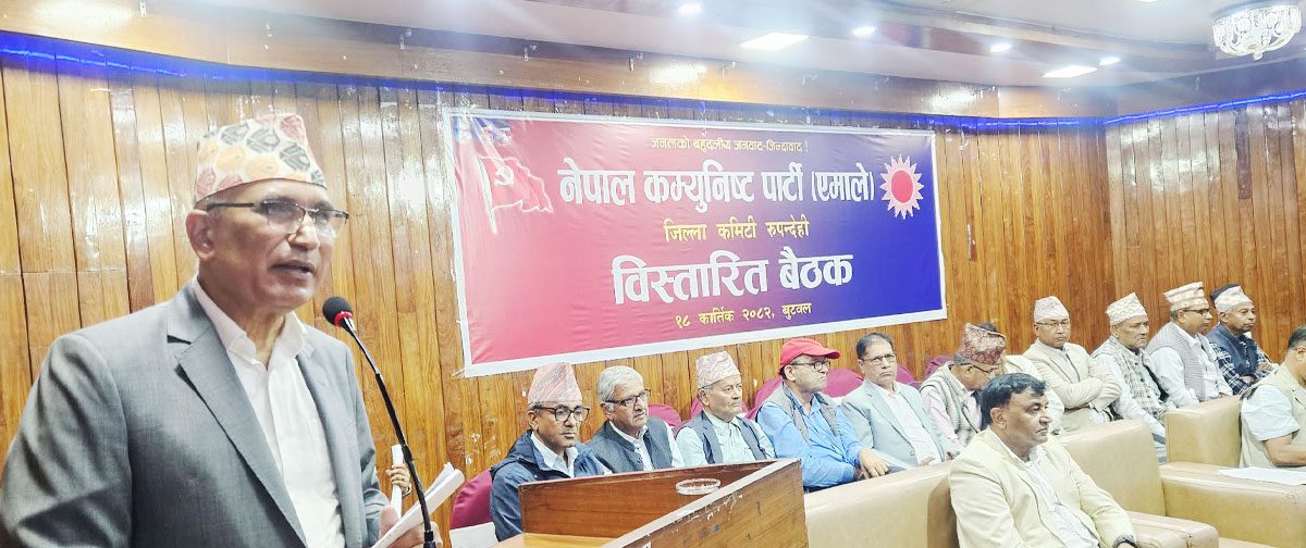 ‘राजाले कु गरेको समयमा देशभर मान्छे सडकमा नआएको बेला लुम्बिनीमा त्यसमाथि बुटवलमा एमालेले गरेको विशाल प्रदर्शनी एेतिहासिक थियो । कार्यक्रममा आउनेहरुलाई सबैतिर रोक्दा सहभागिताको त्यो अवस्था थियो । अब पनि त्यसरी नै लाग्नुपर्छ’ उनले भने–‘नेताहरूले काम गर्न नसके पार्टीबाट बिदा गरौ तर पार्टीलाई जोगाउने काम कार्यकर्ताको हो । कुनै व्यक्तिले गरेका त्रुटि केलाउने हो, कमजोरी सच्चाउने हो त्यो नभए हटाउने हो । रूपन्देही सुस्ताउन सक्दैन, हुदैन । लुम्बिनीबाट देशव्यापी सन्देश दिने हो ।’