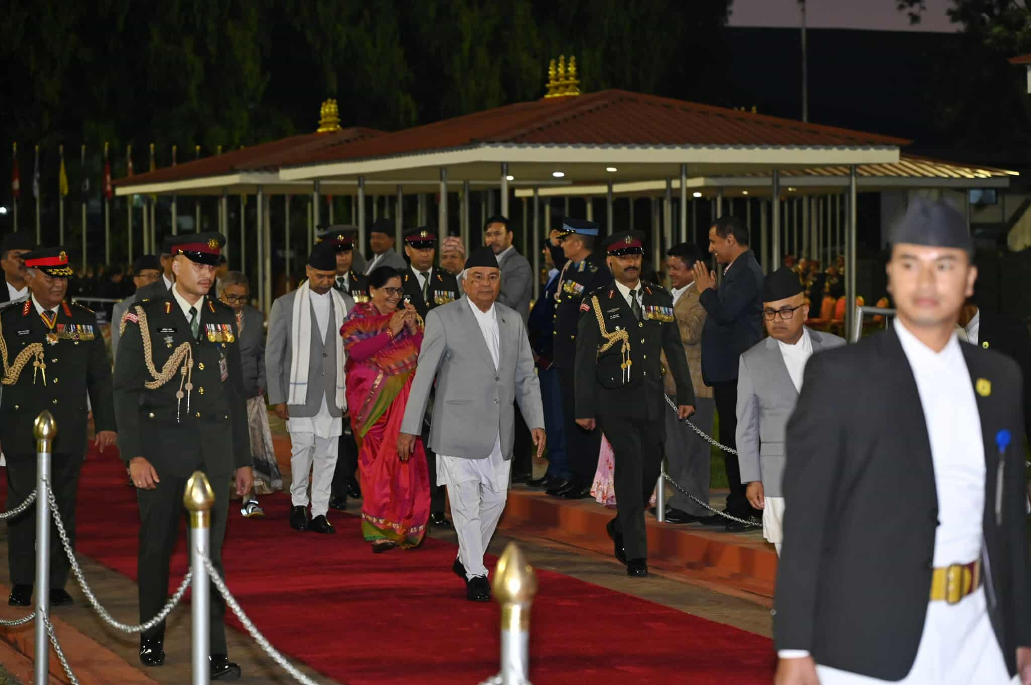 त्रिभुवन अन्तर्राष्ट्रिय विमानस्थलमा उनलाई उपराष्ट्रपति रामसहायप्रसाद यादव, प्रधानमन्त्री सुशीला कार्की, गृहमन्त्री ओमप्रकाश अर्याल, नेपालका लागि कतारका राजदूत, परराष्ट्र सचिव तथा सुरक्षा निकायका प्रमुखहरूले स्वागत गरेका थिए। सो अवसरमा नेपाली सेनाले राष्ट्रपति पौडेलको सम्मानमा सलामी अर्पण गरेको थियो।