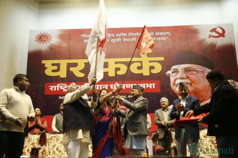 सोमबार राष्ट्रिय सभा गृहमा आयोजित घर फर्क अभियानको राष्ट्रिय घोषणा सभालाई सम्बोधन गर्ने क्रममा अध्यक्ष ओलीले यस्तो बताएका हुन् ।