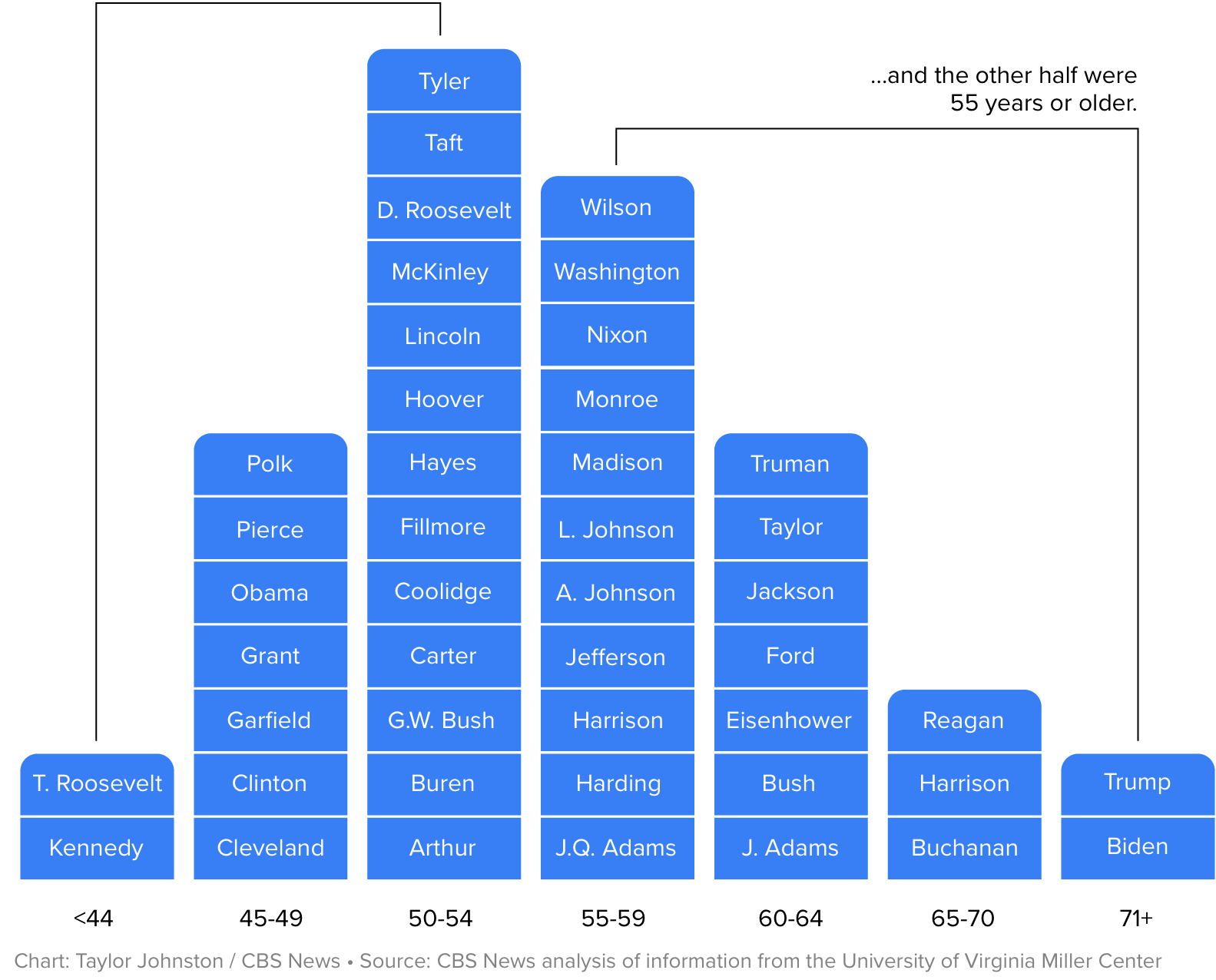 - जो बाइडेन: ८३ वर्ष (नोभेम्बर २०, २०२२ मा ८२ वर्ष पुग्नुभयो)।
