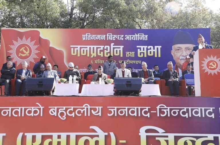 ‘लोकतन्त्र फर्काउने बाटोमा आउनुस्। नभए जनताले गर्नेछन्। त्यसको अगुवाइ एमालेले गर्छ। अहिले देखा परेका बाघ कागजको बाघ। कागजको बाघले तर्साउन नखोजे हुन्छ,’ उनले भने।