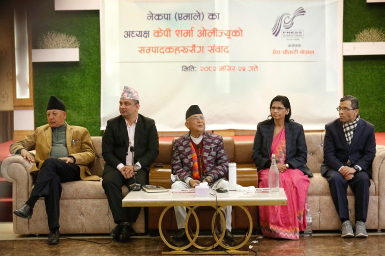 काठमाडौं २५ मंसिर । नेकपा एमालेका अध्यक्ष तथा पूर्वप्रधानमन्त्री केपी शर्मा ओलीले आसन्न महाधिवेशनका सन्दर्भमा सम्पादकहरूसँग विस्तृत अन्तरक्रिया गरेका छन् । २३–२४ भदौ २०८२ मा भएको जेनजी आन्दोलन पछि बालुवाटार छाडेको प्रसङ्ग, वर्तमान सुशीला कार्की नेतृत्वको सरकारको आलोचना, जेनजीसँगको सम्झौता, तथा एमालेको आगामी ११औँ महाधिवेशनसम्बन्धी विषयमा खुलेर कुरा गरेका छन्।