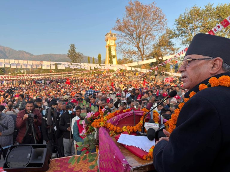 सुर्खेत २७ मंसिर । नेपाली कम्युनिस्ट पार्टीका संयोजक पुष्पकमल दाहाल प्रचण्डले नेपालमा हुने विदेशी चलखेल रोक्नका लागि व्यालेस्टिक मिसाइल प्रयोग गर्ने सामर्थ्य आफूहरूसँग नभएको बताएका छन् । शनिबार सुर्खेतको वीरेन्द्रनगरमा आयोजित एकता सन्देश सभालाई सम्बोधन गर्दै प्रचण्डले विदेशी हस्तक्षेप र चलखेल रोक्ने अस्त्र हतियार नभई जनताको एकता भएको बताएका हुन् ।
