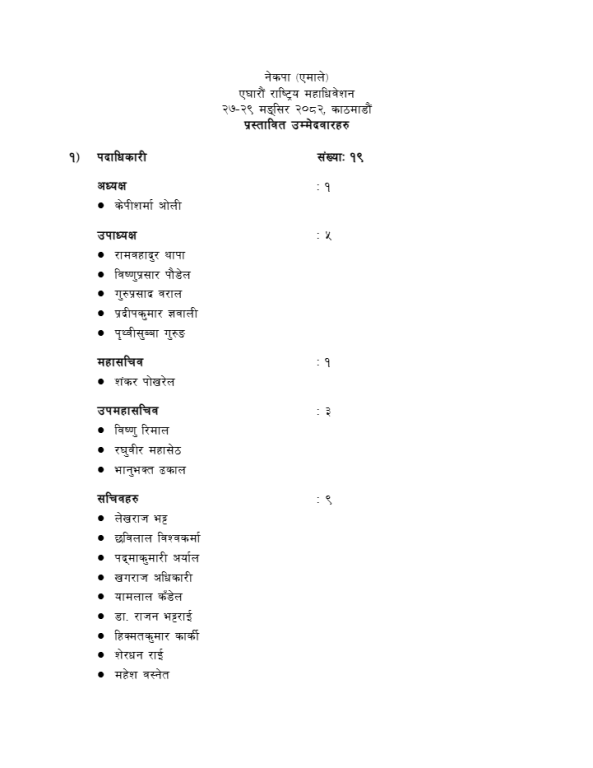 यस्तो छ,ओली नेतृत्वको प्यानलबाट प्रस्तावित उम्मेदवारको सूची’