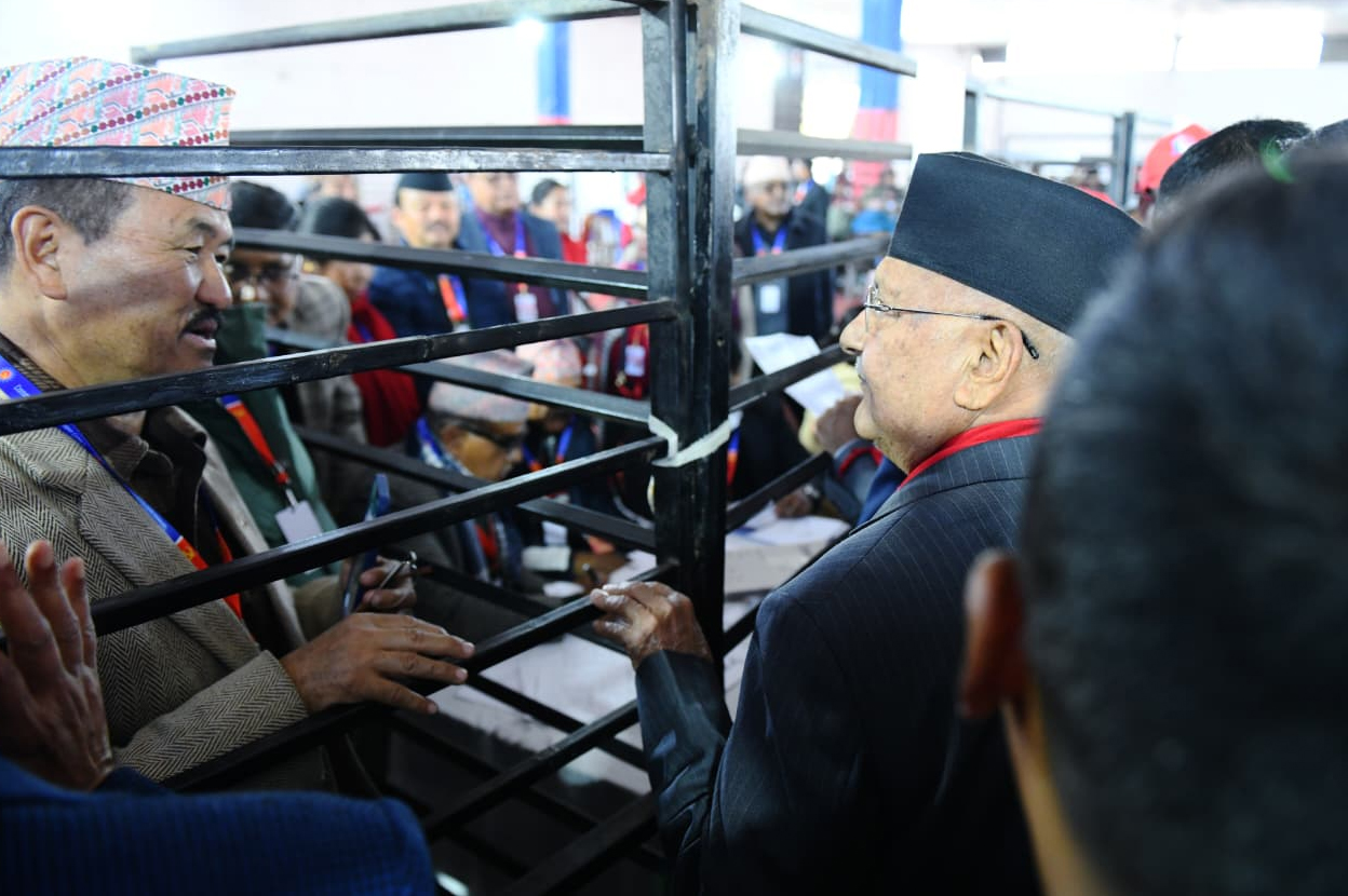 मतदानस्थल भृकुटीमण्डपमा बिहानदेखि नै नेता–कार्यकर्ताको भीड छ। ओली पक्षका उम्मेदवारका पक्षधरहरू आक्रामक प्रचारमा लागेका छन्। उनीहरूले फिल्डमा सक्रिय रूपमा मत मागिरहेका छन्। ओली पक्षले निरन्तरता र स्थिरताको नारा दिँदै आक्रामक अभियान चलाएको छ।