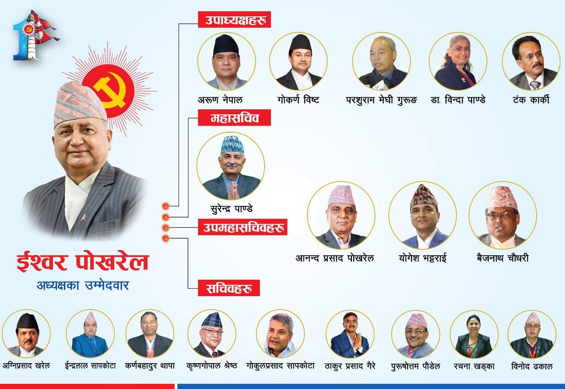 यो प्यानलमा अध्यक्ष पदमा ईश्वर पोखरेल स्वयं उम्मेदवार छन्।