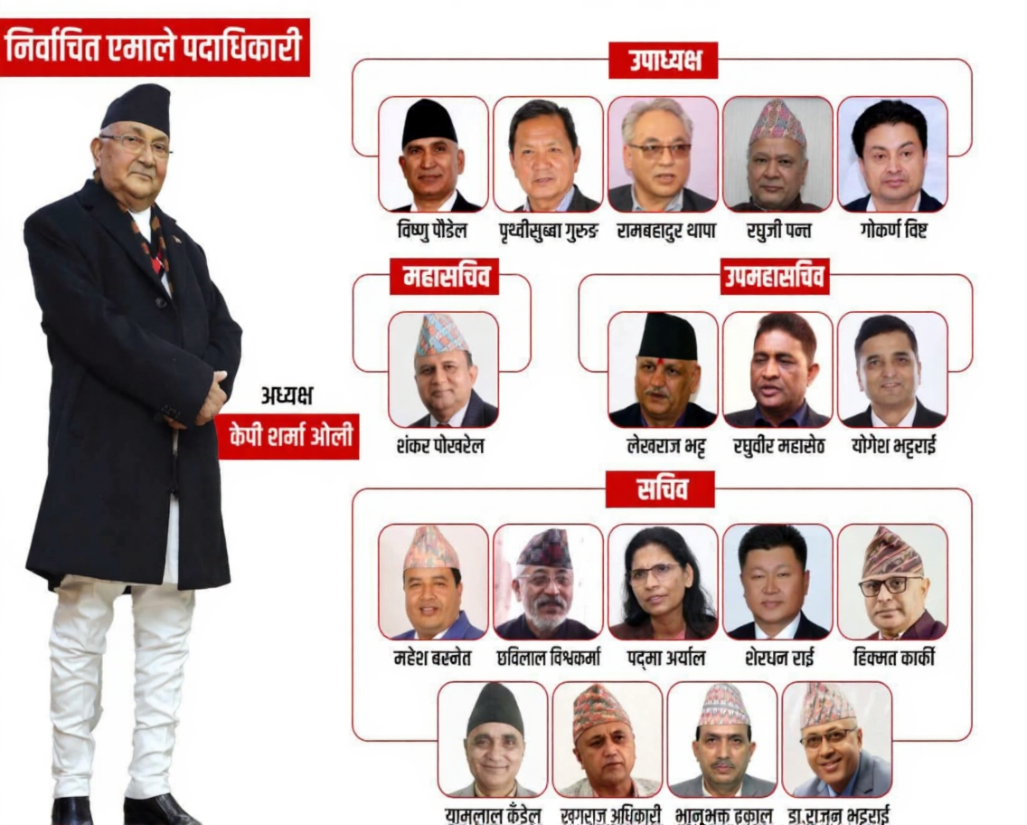 १९ सदस्यीय पदाधिकारीमध्ये १४ जना अर्थात् अधिकांश ६० वर्षभन्दा माथिका छन् । ६० वर्षमुनिका मात्र ५ जना छन् । ७० वर्ष पुगेका दुईजना मात्र छन्— ओली (७४) र उपाध्यक्ष रामबहादुर थापा ‘बादल’ (७०) ।