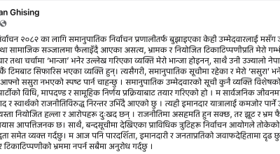 यो निर्वाचन जेन–जी आन्दोलनको भावनामा आधारित छ, तर विकृति कायम रहँदा मतदाताको विश्वास घट्न सक्छ। आयोगले पुष १५–२० सम्म छानबिन गरेर माघमा अन्तिम सूची सार्वजनिक गर्नेछ। दलहरूले पारदर्शिता अपनाए मात्र गणतन्त्रको समावेशी सपना साकार हुनेछ।