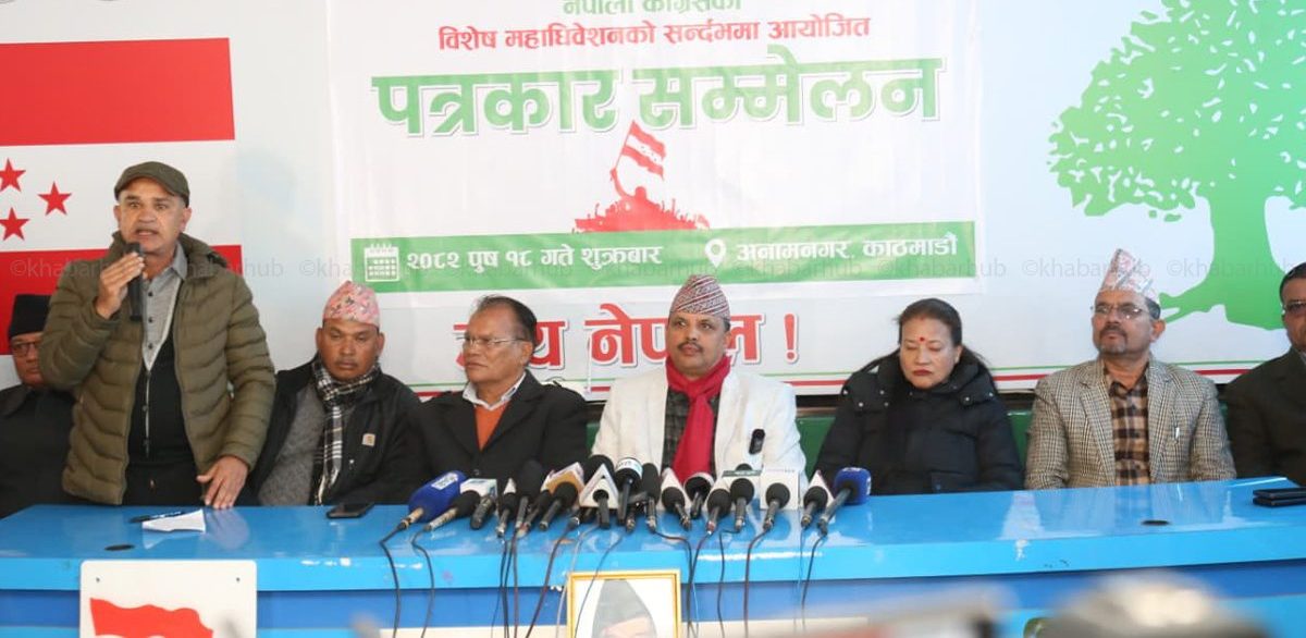 उनीहरूले विज्ञप्तिमा भनेका छन्, ‘नियमित महाधिवेशन सम्पन्न हुन नसक्ने अवस्था सिर्जना भएपछि विशेष महाधिवेशन नै विकल्प बनेको छ ।’